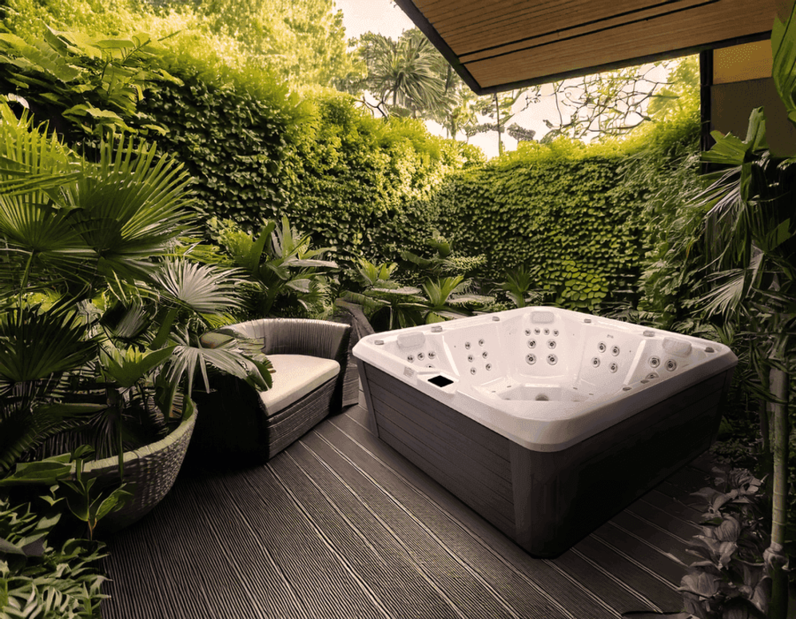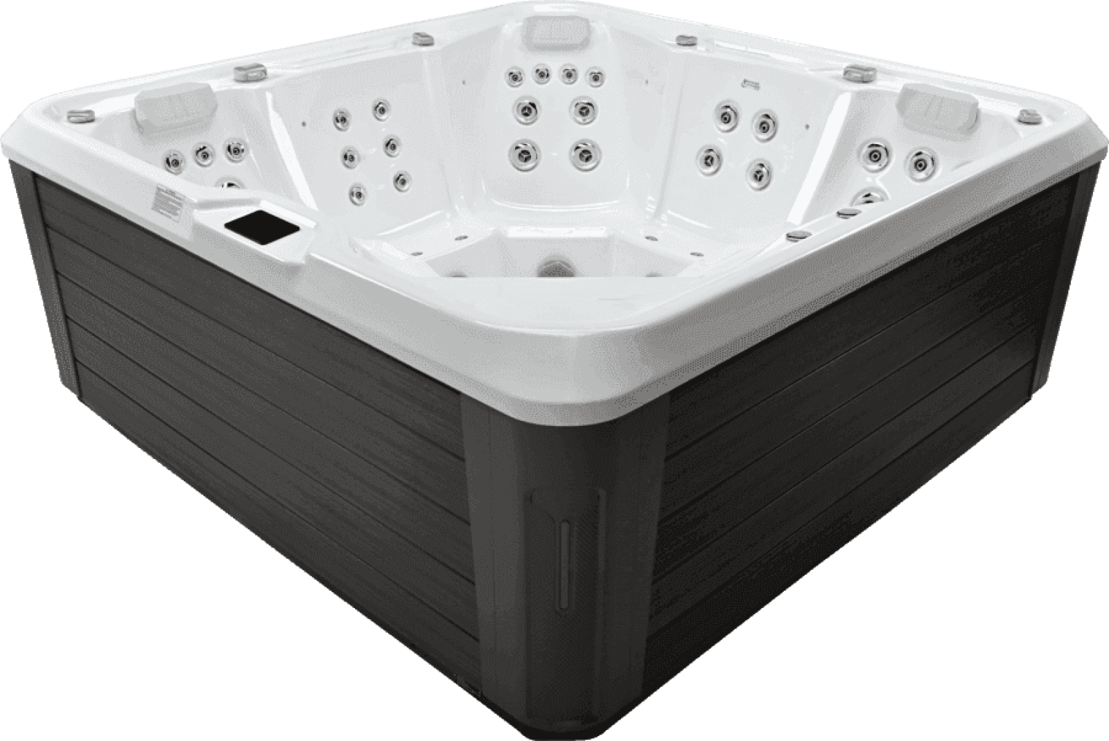 The EQ770 Pro is a deluxe large family hot tub designed for ultimate comfort and relaxation, featuring two ergonomic loungers and an advanced hydrotherapy system. Measuring 2300mm x 2300mm x 920mm, it offers ample space for multiple users to enjoy a luxurious spa experience. With 45 hydro jets and 10 air massage jets powered by dual LX-LP300 massage pumps and an LX-WTC50 circulation pump, this hot tub provides an invigorating and therapeutic water massage. The TP10-3kW intelligent control system ensures smooth operation, while the Spatech CA300 touch-screen interface offers an intuitive user experience.